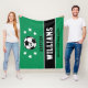 Personalised Green Soccer Player Name Fleece Blanket