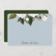 Personalised Greenery Leaves Watercolor Light Blue Note Card. Space for your personalised name in a custom classic modern script font.
