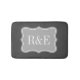 Classy grey and white monogram bath mat. Chic bathroom home decor. Grey Bracket shape monogrammed design. Stylish typography for personalised name initial letters. Cute wedding or birthday gift idea for newly weds, bride and groom, husband and wife, engaged couple etc. Pretty interior decoration for elegant bath room. Available in small, medium and large big size. Customisable background colour.