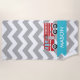 Personalised Grey Teal Chevron Fire Truck Boy Beach Towel