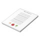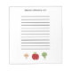 Personalised grocery list notepad featuring a smiling apple, cringing broccoli and a proud mushroom.