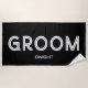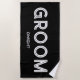 Soak up the sun on your honeymoon relaxing on this Personalised Groom Black White Modern Wedding Beach Towel. It is modern retro designed with customisable background. The text is "groom" in big white retro line lettering on the middle. Name is in white letters on lower centre.