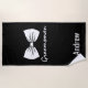 Black and white groomsman design features scripted lettering, a bow tie illustration and easy to personalise name template.