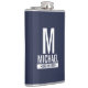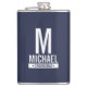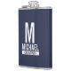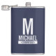 This design features personalised groomsman's monogram, name and title in white modern bold sans serif font style on navy blue background.