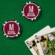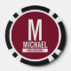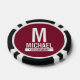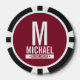 This design features personalised groomsman's monogram, name and title in white modern bold sans serif font style on burgundy red background.