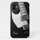 A sleek guitar in black and white and a place for your name. Type in the name you want at the prompt, use just an initial if you prefer a monogram or delete text if you want it without. An excellent gift for your favourite musician.