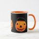 Creative Halloween party mugs or gifts featuring cute Jack-o'-lantern pumpkins. To personalise edit text to add her or his name.
