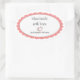 This personalised oval sticker features a pink ruffled edge and a ribbon stitched border and a coordinating black and pink open heart design. Perfect for your handmade goodies, crafts, gifts, candy bags, jars, cans, gift boxes, party favours and more! Stand out with these unique custom sticker seals. Click the "Customise it!" button to change the text size, text colour, font style and more! Please note: the ribbon stitch border is a ribbon stitch appearance.