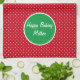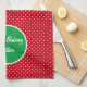 Put a smile on any holiday baker's face with this red & white Swiss dot with green accent kitchen towel. Easily personalise and change the text using the Template provided. This large 16"x24" towel is 80% durable woven polyester/ 20% polyamide blend microfiber. Great for drying and machine washable. Made to last a lifetime. Click "Create your own.." to start from scratch. See "About This Product" at side for additional information.
