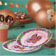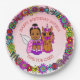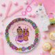 Personalised Happy Birthday Fairy and Unicorn Coral party paper plates with pretty brightly coloured floral border.