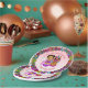 Personalised Happy Birthday Fairy and Unicorn Coral party paper plates with pretty brightly coloured floral border. Sweet little girl of colour with a brown unicorn and floral details.