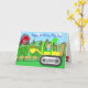 This cute hand drawn card, features a little boy riding in a tractor with a general boy's theme of tools, tractors, trucks and cars.