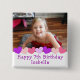 Personalise this birthday button by adding your child's picture, name and birthday age to this Happy Birthday button in the customise area. PInk and purple hearts and white background. Button for the birthday girl and guests at the birthday party.