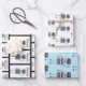 Happy Birthday robot themed blue, black and white boy's birthday gift wrap.