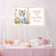 Cute little striped kitten surrounded by pink and coral flowers personalised birthday banner for a little girl's birthday banner.