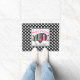 Welcome your guests with this cute mat with a polka dot background, a striped camper, birds, flowers, hearts and stars. Personalise it with your name.