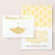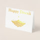 Send your dear ones a heartfelt Diwali message with this beautiful gold foil greeting card. You can easily personalise your message and add your family name. Please note that the gold foil is only on the outside of the card and the inside design and text is of a yellow colour.