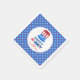 Custom paper napkin featuring a patriotic star background along with the text "Happy Fourth of July" Add your family name to the napkin to personalise it.