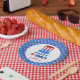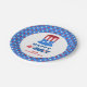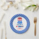 Custom paper plates featuring a patriotic star background along with the text "Happy Fourth of July" Add your family name to the plate to personalise it.