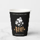 This Halloween paper cups template features a ghost ornament and "Boo" lettering. You can easily personalise these stickers with your name or a custom message.