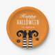 Personalised Happy Halloween Witch Feet Orange Paper Plate