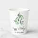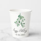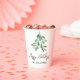 These festive paper cups are decorated with watercolor mistletoe and say Happy Holidays in stylish script typography.