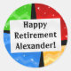 Personalised Happy Retirement, Colour Squares Part Classic Round Sticker