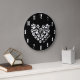 Personalise the text and even the background colour! Or remove the text to keep in simple. This cute paw print design is great for pet lovers everywhere, featuring a heart shape made up of white paw prints against a classic black background. The monochromatic palette adds a timeless and versatile touch, making it suitable for a range of applications. Whether you're working in a veterinarian clinic, running a dog grooming business, or offering dog walking services, this black and white paw print heart design exudes warmth and affection in a sleek and stylish manner. Its universal appeal makes it a delightful choice for expressing love for animals across various contexts within the pet care industry. Personalised Heart Paw Prints Large Clock