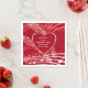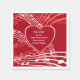 Modern personalised Hearts Music Valentines Party Paper Napkins, showing white and peach music staves against a rich red background, and a heart at the centre with CUSTOMIZABLE TEXT, which you can personalise with your name(s) and message. This would make a great addition to your Valentine's or engagement party supplies, and can also be customised for Anniversaries, Birthdays and 'Just Because' days. Matching gifts, cards and party supplies available from a wide selection of designs by Berean Designs.