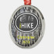 Personalised Hiking "iHIKE" Boot Print Tag Christmas Ornament with Printed Tree Bark Background