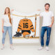 A unique and fun sports design with a personalised ice hockey jersey in golden yellow and black hanging in a locker room with a helmet, ice skates and a hockey stick. The jersey can be fully personalised with the number and name of your choice to make a great gift for any ice hockey fan, ice hockey coach or ice hockey player.