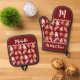 Personalised Holiday Baking Gingerbread Pattern Oven Mitt & Pot Holder Set!