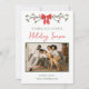 Celebrate the holiday season in style with this elegant and customisable photo card. Featuring a classic red bow and greenery accents, this design is perfect for adding a festive touch to your family photo or seasonal message. With fully customisable text, you can create a holiday card that feels uniquely yours, whether you're sending warm wishes to friends, family, or colleagues. The clean and modern layout ensures your photo shines, making it an ideal choice for those who appreciate both tradition and contemporary design. Personalise it today for a card that truly captures the spirit of the season!