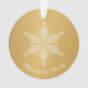 Married & Merry - Mr. & Mrs. Wedding Photo Holiday Ornament -- Add your own favourite family, kids, or pet picture on the back to create a unique personalised keepsake memento to hang on your tree for years to come, or send as gift to friends or loved ones far away. Can also be used to create fun and memorable gift tags for the special people on your list ... mum, dad, grandparents, sisters and brothers, etc. Reverse Side -- Elegant vintage white filigree snowflake on classy gold background with optional custom curved text.
