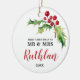 Personalised Holly Berry Greenery Newlyweds Custom Ceramic Ornament. Personalise with your custom information on both front and back.