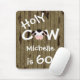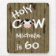 Personalised Humourous Holy Cow Someone is 60 Birthday Mousepad with Barn Wood Background.