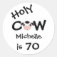Personalised Humourous Holy Cow Someone is 70 Birthday Stickers in Black and White.