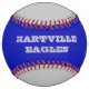 Use our template to customise your own personalised softball for your home town team. This one is done in blue and silver our hometown team's colours but can be easily changed to your teams colours. Text area's can be customised as well. Set your team up in style this baseball season.