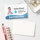 Personalised Hospital Employee Logo Photo and ID Blue and White Badge. For further customisation, please click the "Customise it" button and use our design tool to modify this template.