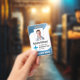 Personalised Hospital Employee Logo Photo and ID Blue Black and White Badge. For further customisation, please click the "Customise it" button and use our design tool to modify this template.