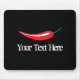 Personalised hot red chilli pepper mouse pad. Spicy food design with vintage typography template. Add your own name, monogram or funny quote / saying. Cute gift idea for southwest men women and teen kids. Black or custom colour background.