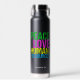 Peace Love Human Resources water bottle for a human resources manager. A peace sign, heart, and Hr written in neon colrs. Customise with your rep name, business, or company on this cute monogram gift.