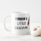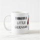 Funny dachshund lovers mug. Hilarious quote pun: I KNOW A LITTLE GERMAN—Personalise with your wiener dog's name.