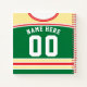 This design is an ice hockey / lacrosse style jersey in green with cream and red stripes and trim.