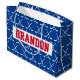 Personalised ice hockey sticks pattern gift bag. Ice hockey sticks and puck design. Cute Birthday or Christmas gift idea for boys and girls. Customise with name or monogram letters. Make one for your son, grandson, nephew etc. Customisable colours.