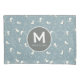Illustrated blue grey ice skate and snowflake pattern with an inset to personalise with your name and initial.