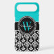 Personalised Initial Aqua Black Damask Pattern Case-Mate iPhone Case