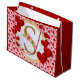 Personalised Initial Floral Monogram and Red Heart Large Gift Bag