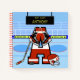 Fun hockey design for the young ice hockey player or hockey fan. Feature the letter A in red and white team colours with co-ordinating hockey stick, helmet , skates and puck. Background features ice hockey rink with customisable scoreboard for your personalised message