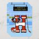 Fun hockey design for the young ice hockey player or hockey fan. Feature the letter H in red and white team colours with co-ordinating hockey stick, helmet , skates and puck. Background features ice hockey rink with customisable scoreboard for your personalised message